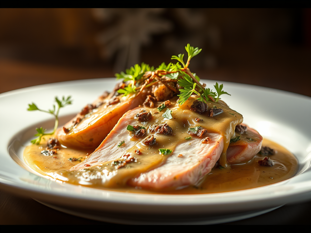fianchetto di vitello – carne macinata – aglio – capperi – erbe aromatiche – tartufo – prosciutto – lardo – cipolle – sale – pepe