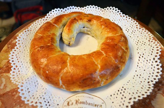 Il presnitz è un tipico dolce triestino, simile allo strudel, a base di pasta sfoglia arrotolata con un ripieno di noci, mandorle, pinoli, fichi, prugne, albicocche, uvetta, cioccolata grattugiata, zucchero, cannella, chiodi di garofano e rum. Pellegrino Artusi lo definì “dolce di tedescheria”. La foto è della Pasticceria La Bomboniera di Trieste.