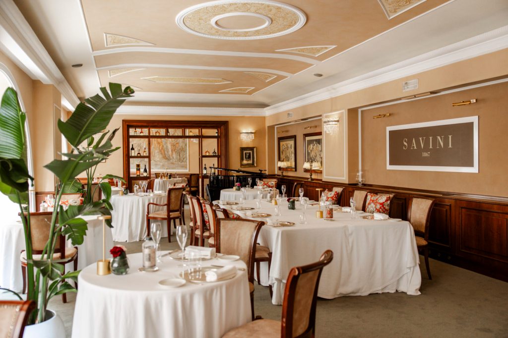 Nato “Birreria Stocker”, Virgilio Savini lo trasformò dopo un paio d’anni nel più elegante locale della città. Tempio dell’ospitalità gastronomica milanese, qui sono confluiti a tavola, in ogni epoca, i migliori intelletti, come Puccini, Mascagni, Boito, Giordano, Verdi, Toscanini, Marinetti (che vi lanciò la cucina futurista), Boccioni, la Callas, Chaplin, Hemingway, Sinatra. Al centro della Galleria, cuore di Milano, con le classiche sale interne, è appuntamento d’élite, di pubblico e artisti, per il dopo-Scala e punto d’incontro dell’alta imprenditoria internazionale. Anche per una piacevole sosta all’ora del tè o una colazione di lavoro.